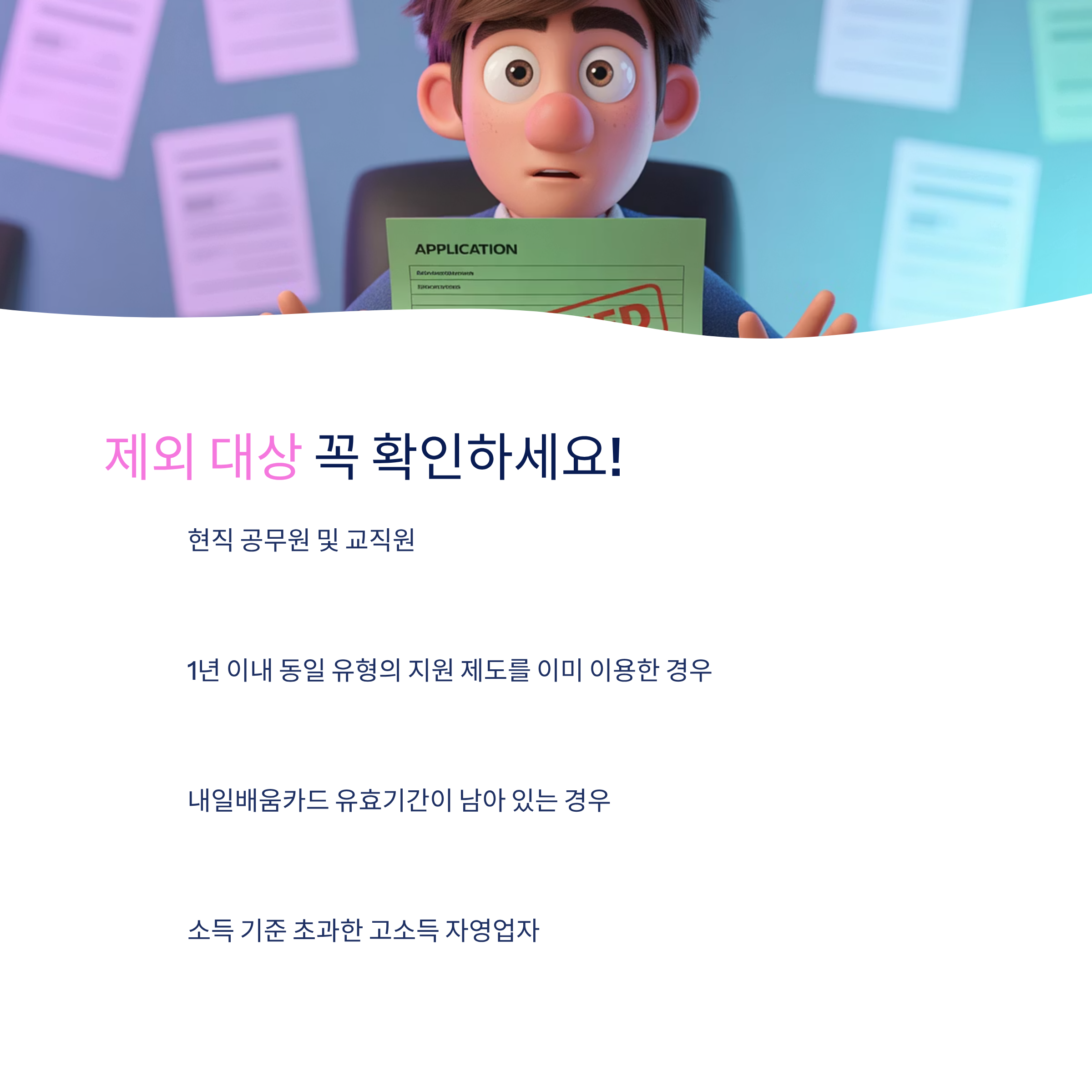 국민내일 배움 카드는 취업 준비생뿐 아니라 재직자, 자영업자, 심지어 대학 졸업예정자까지 두루 활용할 수 있는 유용한 직업훈련 지원 제도입니다. 하지만 모든 국민이 무조건 발급받을 수 있는 건 아니에요.