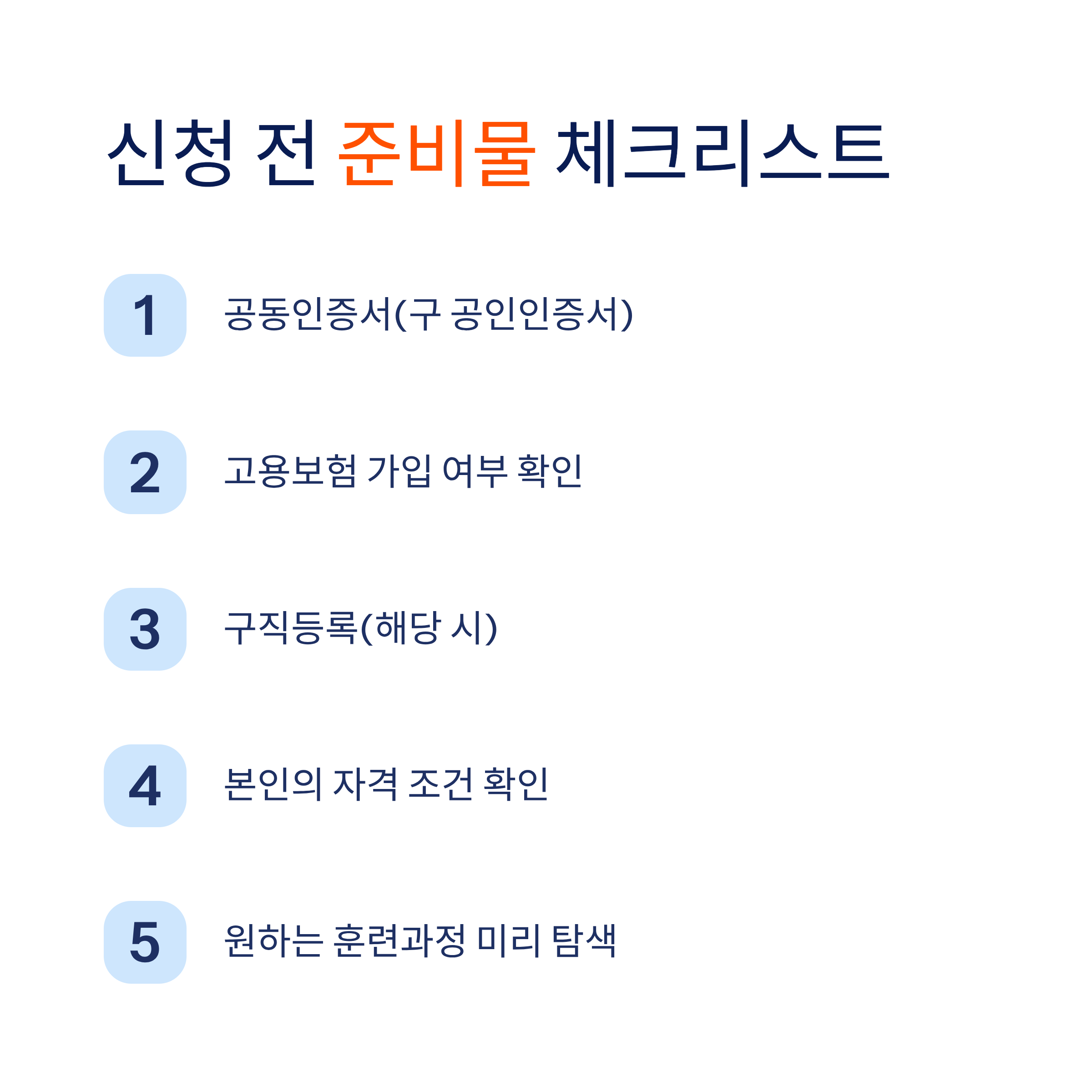 신청을 시작하기 전 아래 항목들을 미리 준비하면 진행이 훨씬 수월해요.