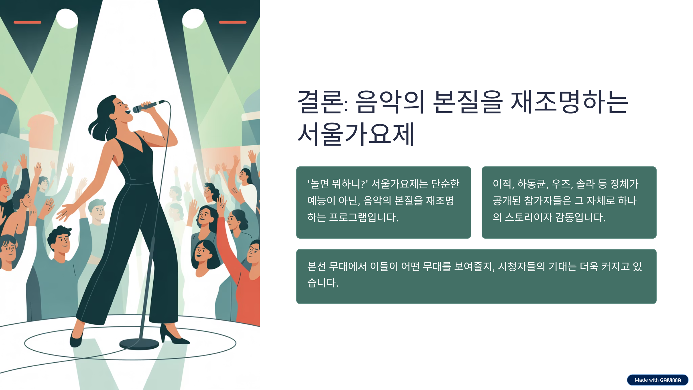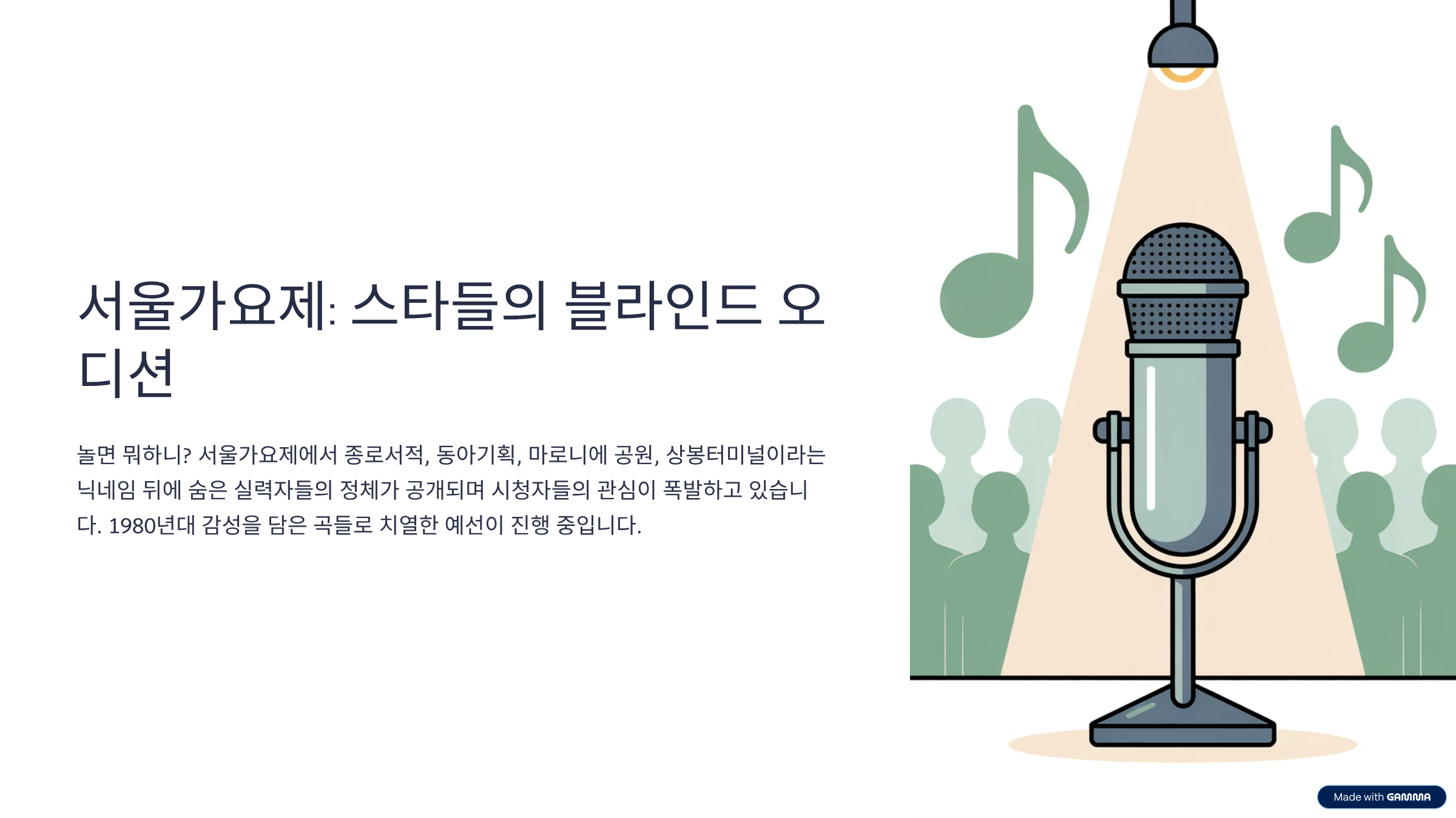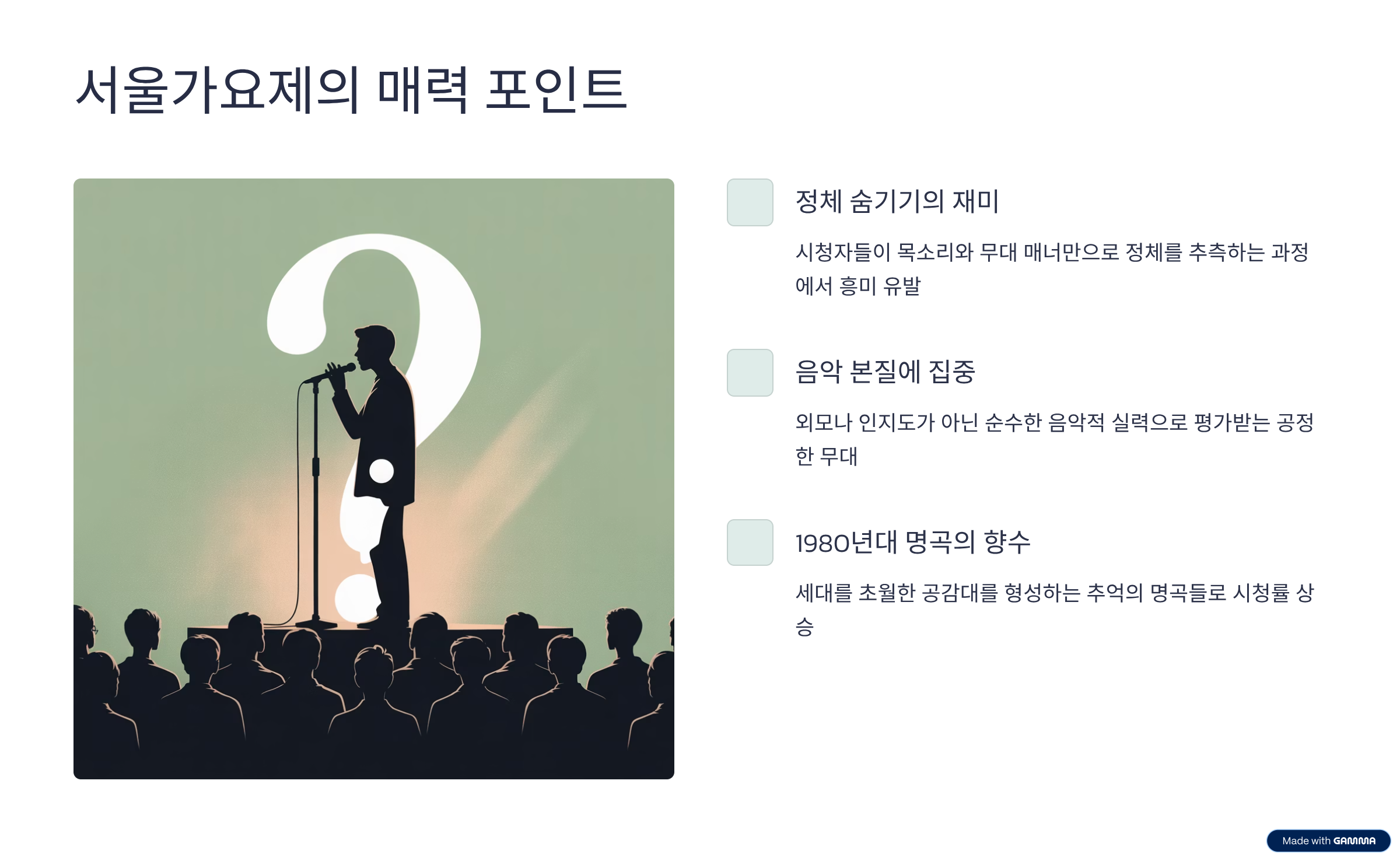 서울가요제의 핵심 매력은 '정체 숨기기'와 '음악 본질에 집중'입니다.