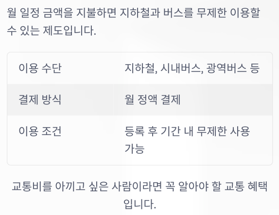 이 제도는 일정 금액만 내면 정해진 기간 동안 지하철, 버스 등을