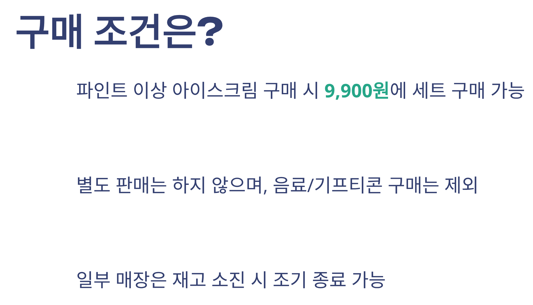 - 파인트 이상 아이스크림 구매 시 9,900원에 세트 구매 가능