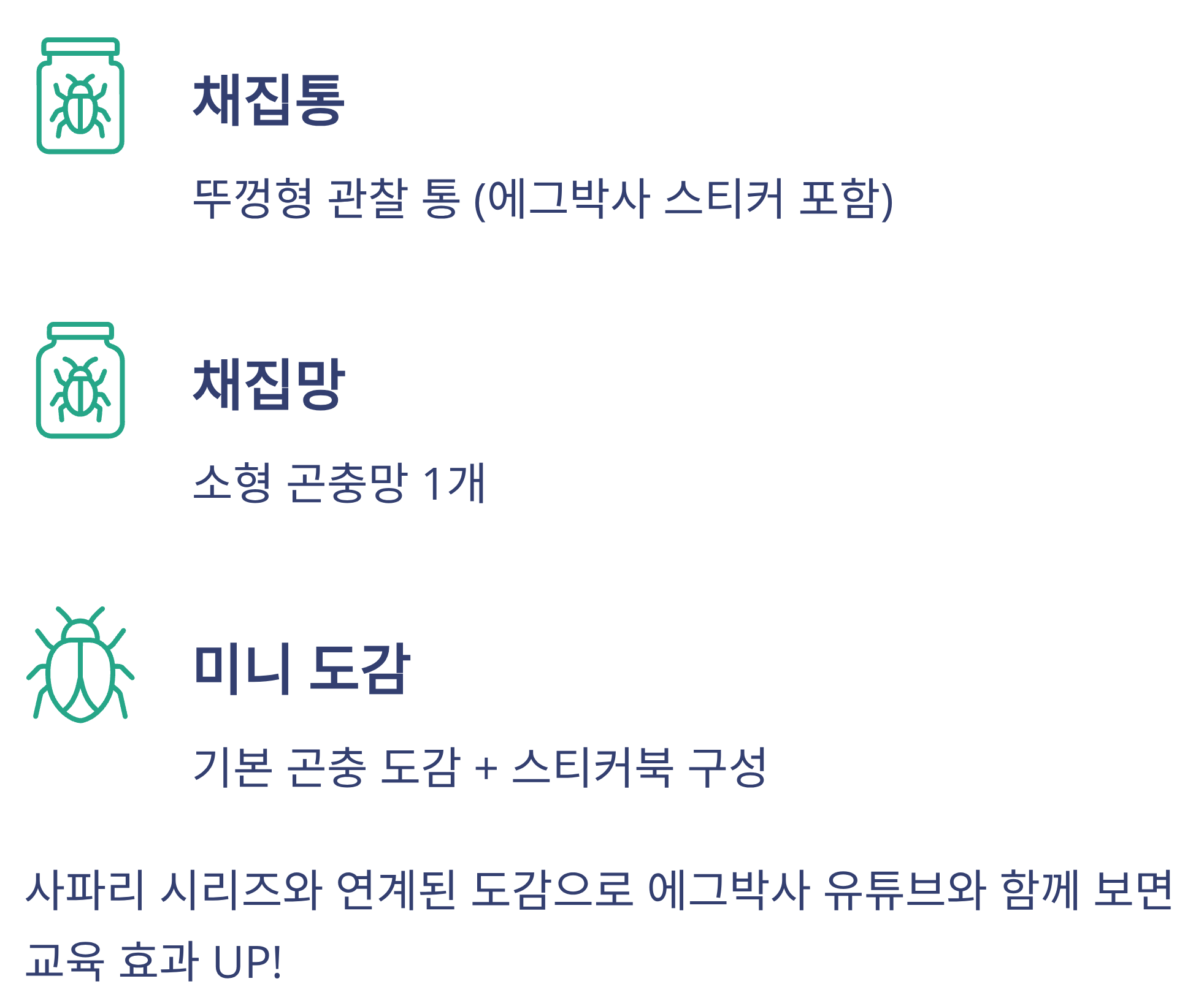 | 채집통 | 뚜껑형 관찰 통 (에그박사 스티커 포함) |