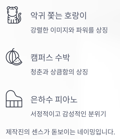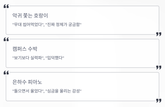 | 은하수 피아노 | 클래식 전공 암시, 섬세한 감정선, 피아노 언급 |