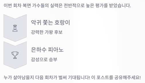 화제의 복면 가수들의 무대와 정체에 대한 궁금증이 또다시 뜨겁게 달아올랐습니다.
