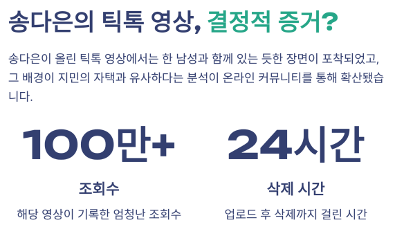 삭제된 SNS 영상 | 송다은이 직접 올린 영상, 이후 삭제됨 |