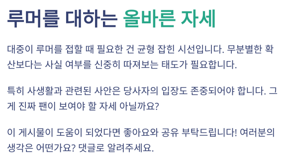 무분별한 확산보다는 사실 여부를 신중히 따져보는 태도가 필요하죠.