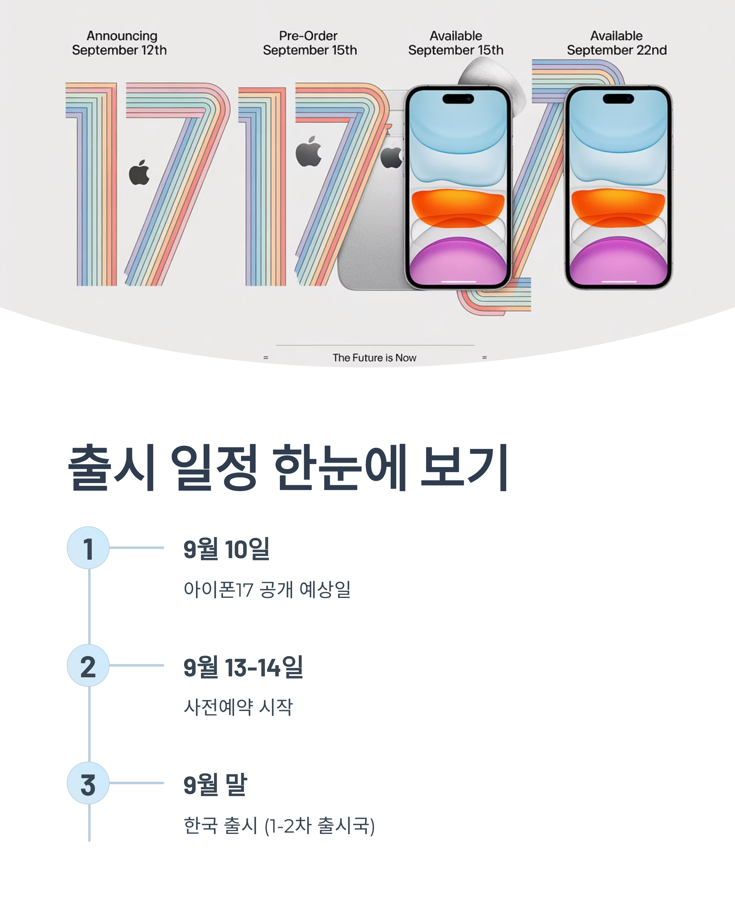 이 패턴을 따른다면 아이폰 17 공개일은 2025년 9월 10일 전후,