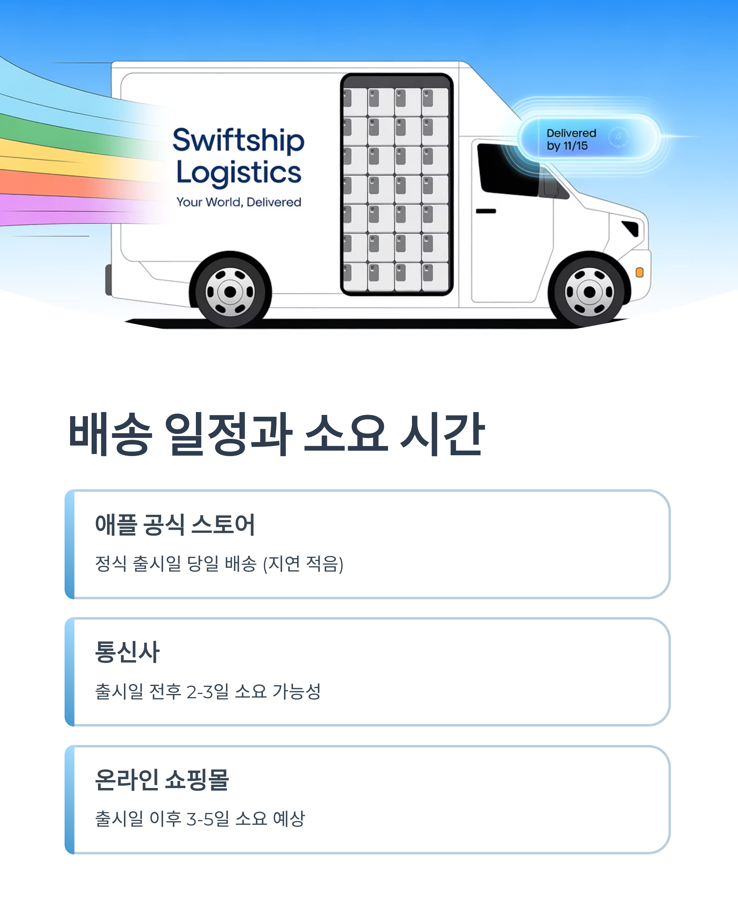 공식 출시일과 동일한 날짜에 배송이 시작되며, 일부 인기 모델은