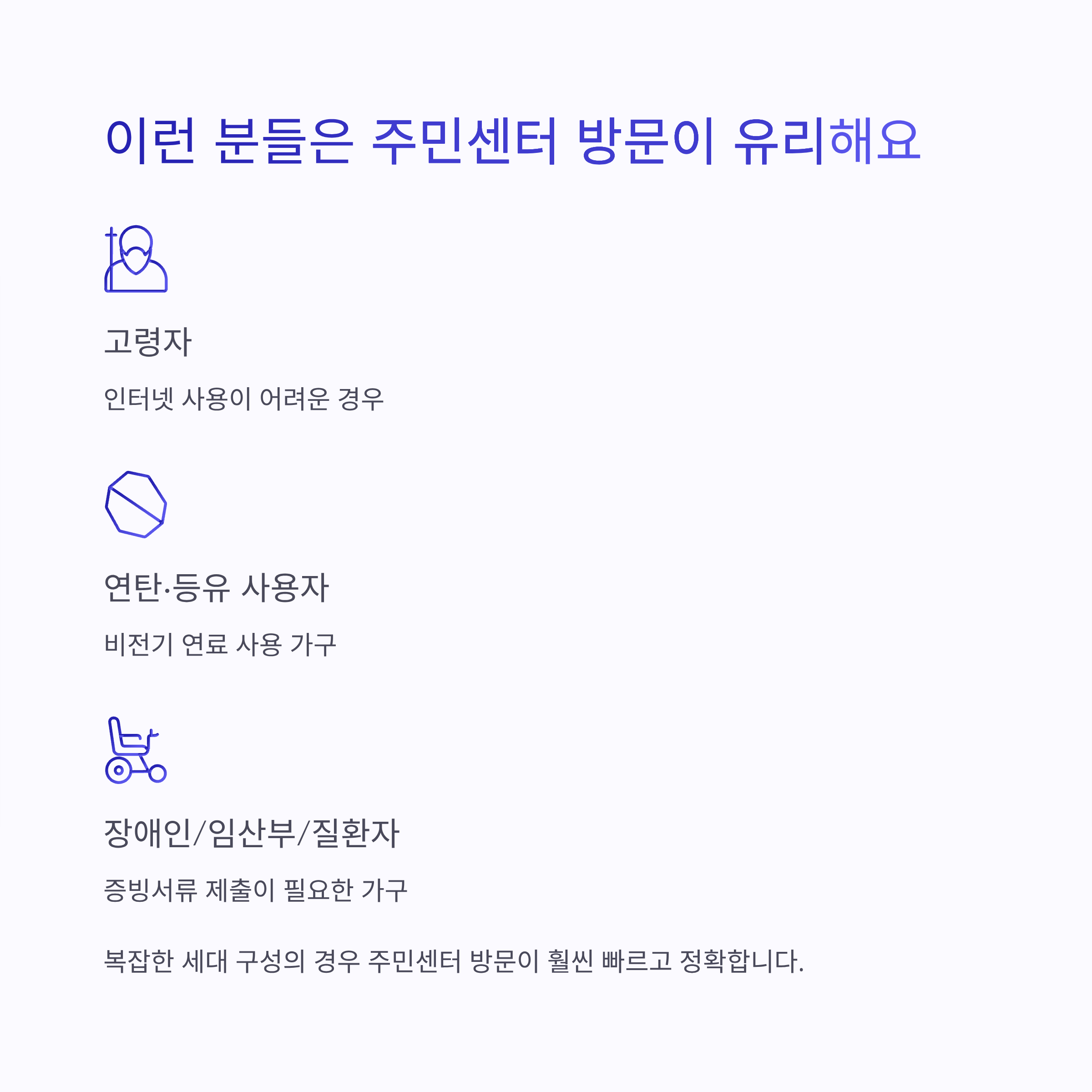 특히 장애인이나 임산부 포함 가구, 질환자 포함 가구는 증빙서류 제출을 위해 반드시 방문이 필요할 수 있어요.