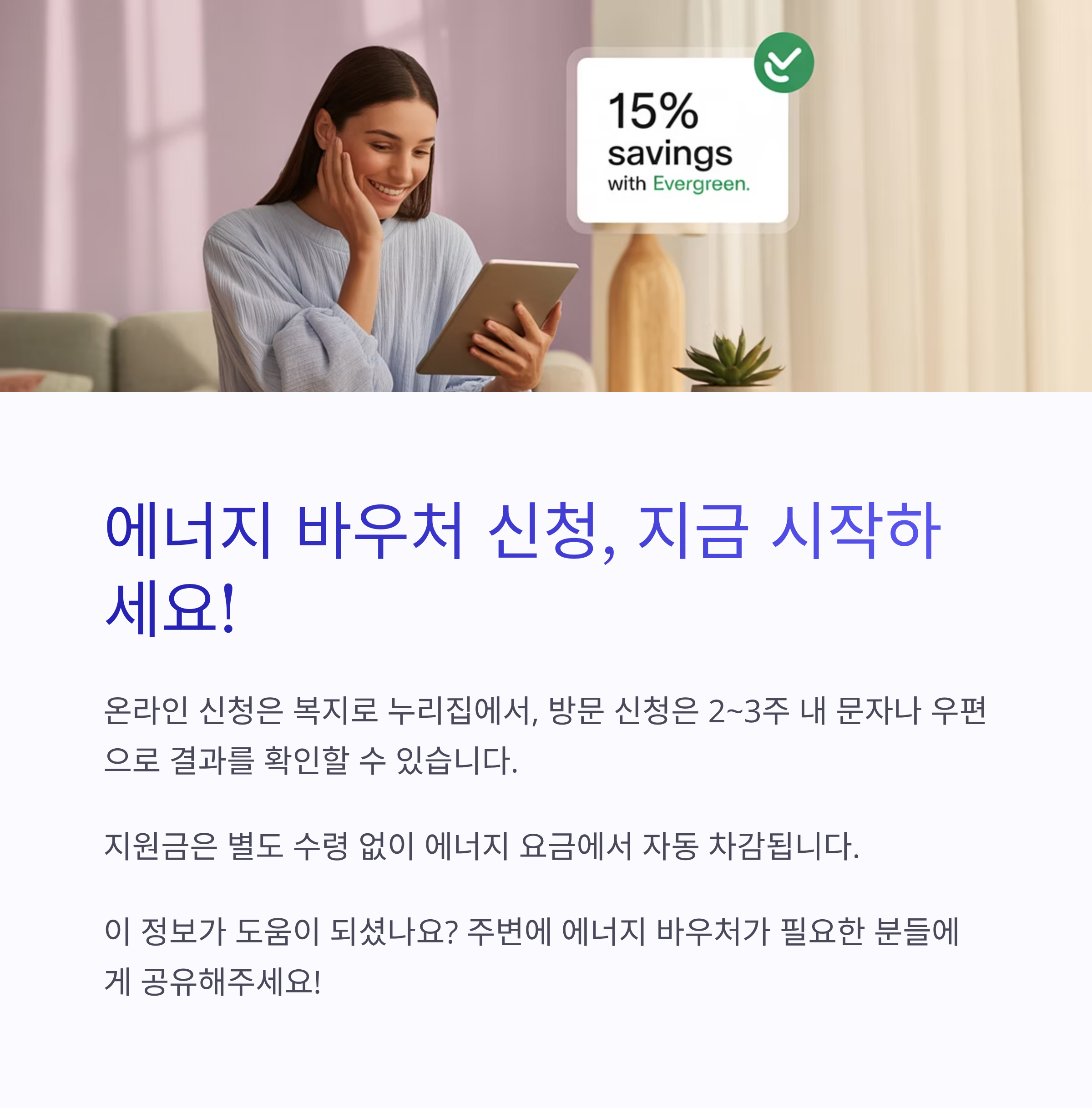 지원금은 별도 수령 없이 에너지 요금에서 자동 차감 방식으로 적용됩니다.
