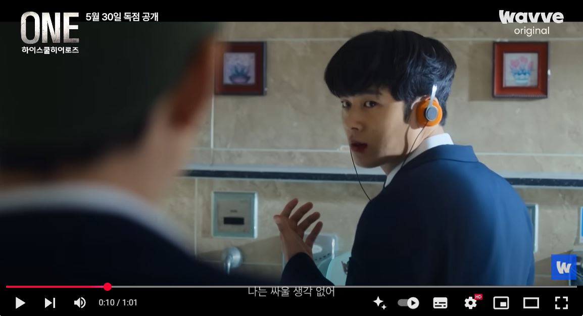 ‘원 하이스쿨 히어로즈’는 웨이브(WAVVE)의 오리지널 콘텐츠로, <약한 영웅 시즌 1>을 만든 제작진이 다시 한번 칼을 갈아 내놓은 작품입니다. 웨이브는 넷플릭스에 약한 영웅 시즌 2의 판권을 넘기면서도 자존심을 회복하기 위해 비슷한 테마의 작품을 준비한 것으로 보이는데요, 그 기대치에 걸맞게 예고편부터 강한 인상을 남깁니다.