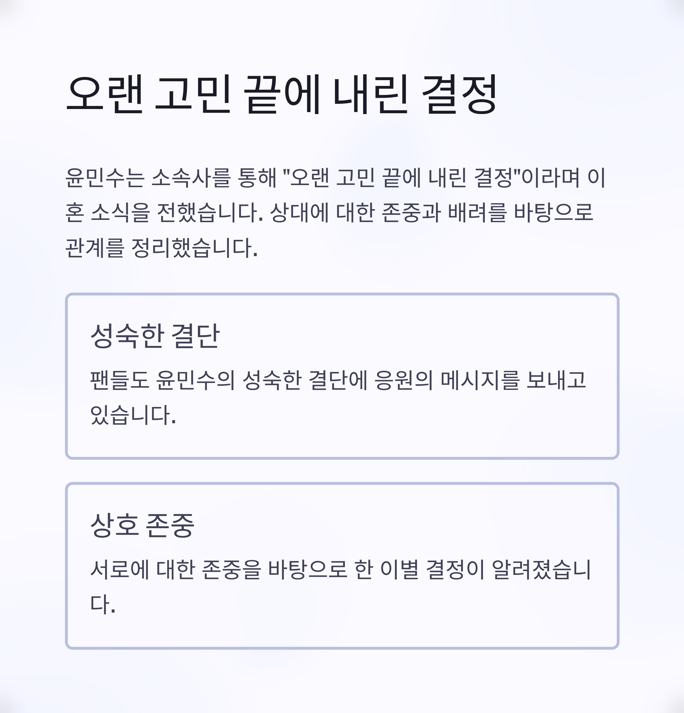 윤민수는 소속사를 통해 공식적으로 이혼 사실을 밝히며
