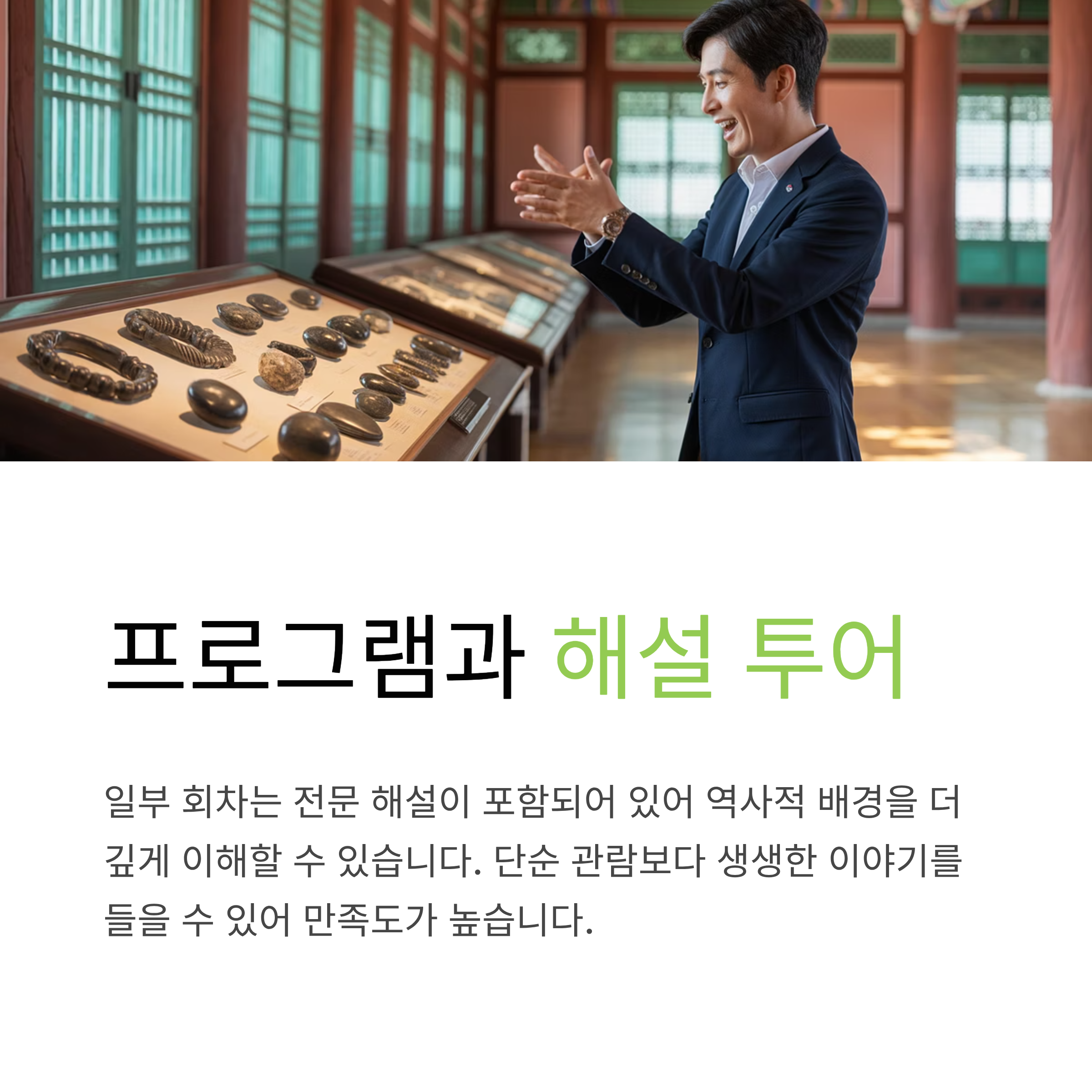 단순 관람과 달리 생생한 이야기를 들을 수 있어 만족도가 높습니다.