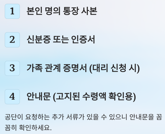 - 가족 대리 신청 시 추가 서류 필요