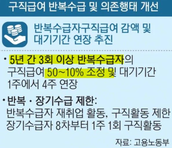 - 최근 5년 이내 3회 이상 수급 시 지급액 감액