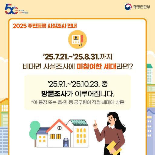 대상자들은 이를 통해 주민등록사항이 제대로 등록·관리되고 있는지 직접 확인할 수 있으며, 행정자료 정합성을 높이고 지역사회 안전망을 강화합니다.