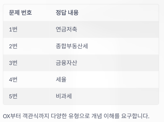 이번 2교시 퀴즈는 "금융·세금·부동산"이 핵심 키워드입니다.