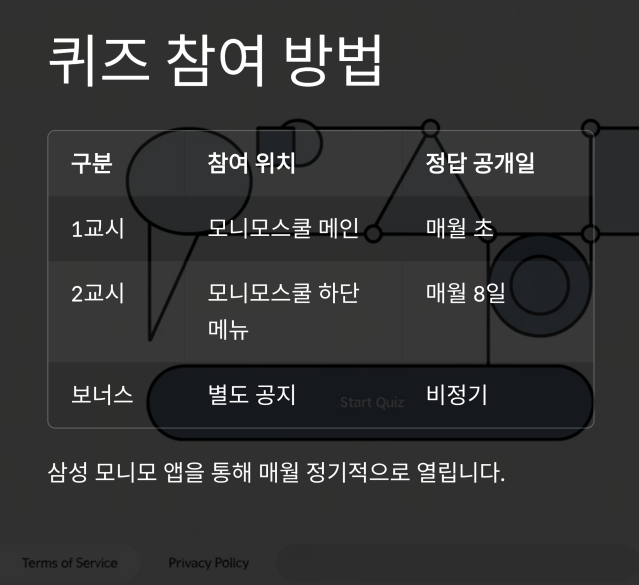 모니모스쿨 퀴즈는 삼성 모니모 앱을 통해 매월 정기적으로 열립니다.