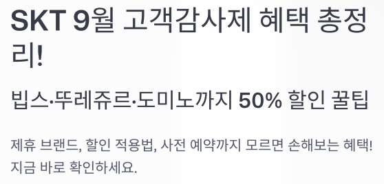 SKT 9월 고객감사제 혜택 총정리! 빕스·뚜레쥬르·도미노까지 50% 할인 꿀팁 공개