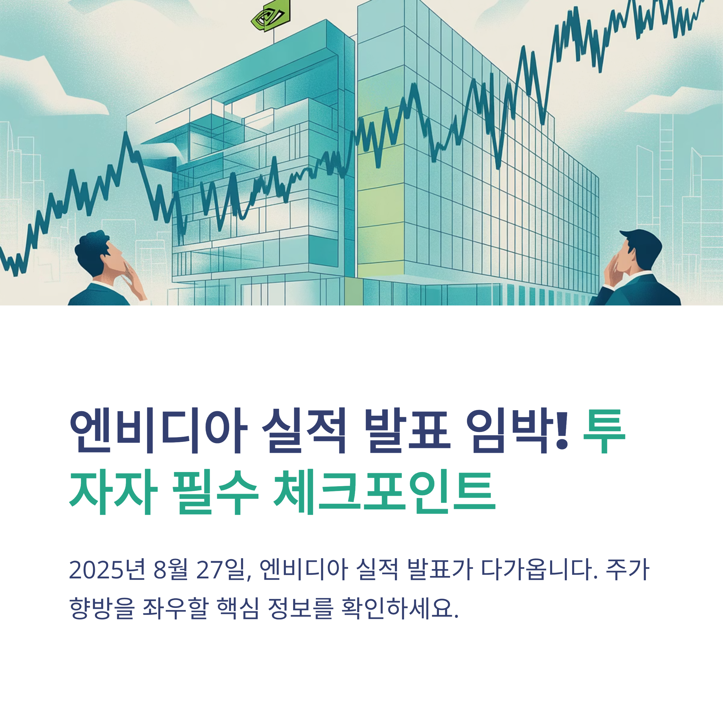 2025년 8월 27일, 엔비디아 실적 발표에 쏠리는 이목… 주가 향방은?2025년 8월 27일, 전 세계 투자자들이 기다려온 엔비디아의 2분기 실적 발표가 다가오고 있습니다.특히 한국 투자자들 사이에서는 실적 공개 시각과 주가 변동 가능성에 대한 관심이 높아지고 있는데요.이번 포스팅에서는 발표 일정부터 주가 예측, AI 시장 영향까지 실적 발표 전 꼭 확인해야 할 포인트를 정리해 드립니다. 발표 일정은 언제? 한국 시간 기준 꼭 체크!엔비디아의 실적 발표는 보통 미국 증시 마감 후에 이뤄지며, 한국 시간으로는 다음 날 새벽입니다.2025년 8월 27일 발표는 한국 시간 기준 8월 28일(목) 새벽 5시 전후로 예상되고 있습니다.정확한 시각은 변동이 있을 수 있으니, 발표 당일 새벽 전후로 실시간 뉴스나..