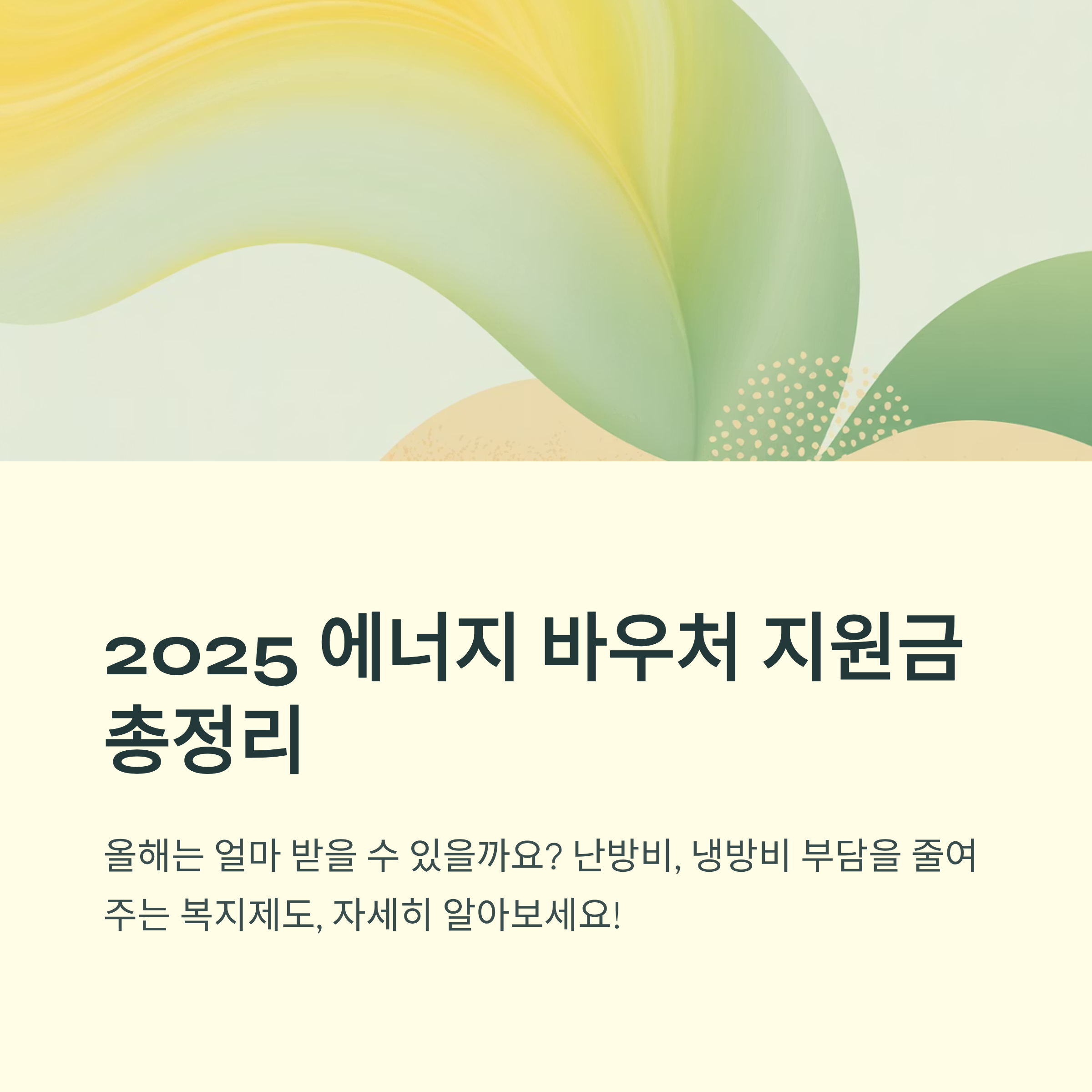 올해는 얼마 받을 수 있나요? 에너지 바우처 지원 금액 자세히 알아보기에너지 요금이 점점 오르면서 난방비, 냉방비 부담이 커지고 있죠. 정부가 지원하는‘에너지 바우처’는 이런 부담을 줄여주는 복지제도입니다.2025년에는 지원 금액에 어떤 변화가 있을까요?이 글에서는 에너지 바우처 지원금의 구성, 가구별 차등 금액, 사용처까지 한눈에 정리해 드립니다.2025년 에너지 바우처 지원금, 어떻게 나뉘나요?지원금은 크게 하절기와 동절기로 나뉘어 지급됩니다.하절기에는 '전기요금' 지원, 동절기에는 '전기·도시가스·지역난방 등' 다양한 에너지 사용처에 적용돼요.가구 유형에 따라 금액도 다르게 책정되기 때문에 세대 구성에 따라 받을 수 있는 금액이 달라집니다. 가구 유형별 지원 금액2025년 기준 에너지 바우처는 3가..